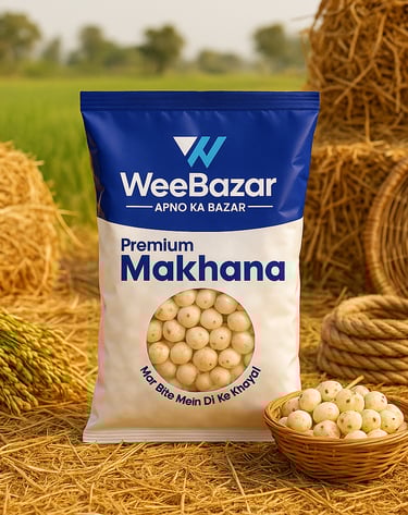 At WeeBazar, we bring you the purest, crunchiest, and most premium White Makhana (Foxnuts/Makhana) sourced directly from trusted farmers across India.